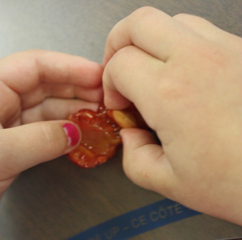 Johwanna had a technique for removing cherry pits that works like a charm. Miss E also had a very slick way for removing her pits and did better than I did! Seriously!