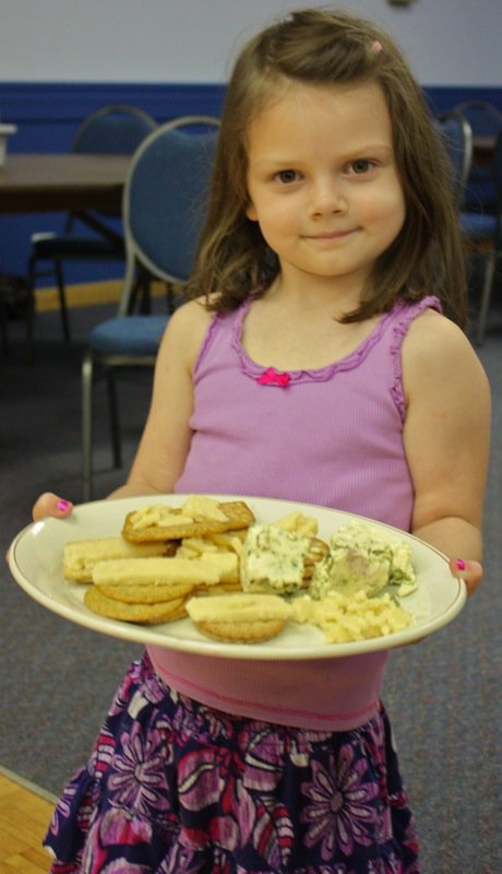 Time for treats! Johwanna didn’t miss a beat. Crackers, cheese, and a sampling of the delicious Evan’s Cherry Walnut Chutney to go with! Of course, Miss E was happy to serve.