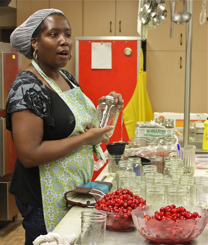 Johwanna had groups go into the kitchen to preserve their cherries in a simple syrup for a multitude of future uses. Her individual focus and instruction with each small group made the learning experience more personal.