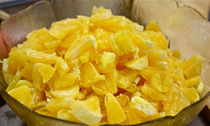 - Remove remaining white membrane and peel from citrus fruit, discard seeds and chop fruit; add to cherries
