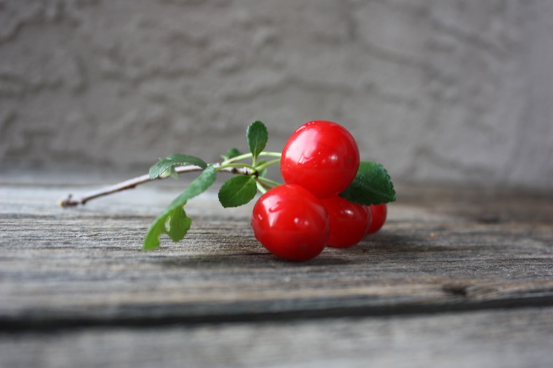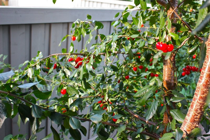 The photo of the portion of the tree bearing fruit looks fake because the cherry colour is simply so intense. That’s all I got from my entire tree. Definitely enough for one lovely sauce, maybe two.