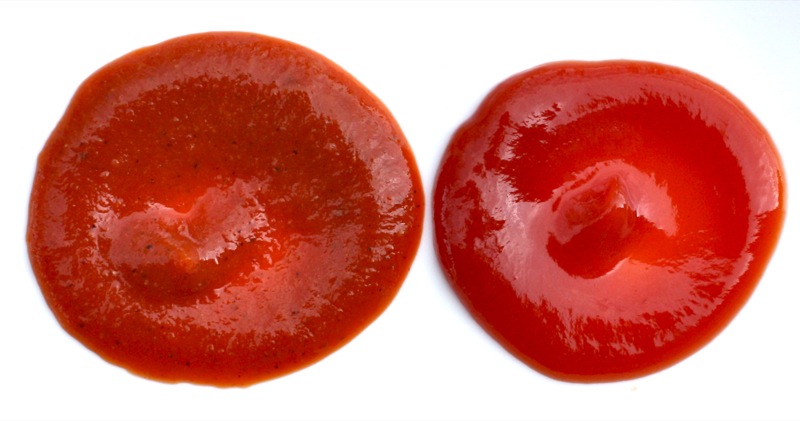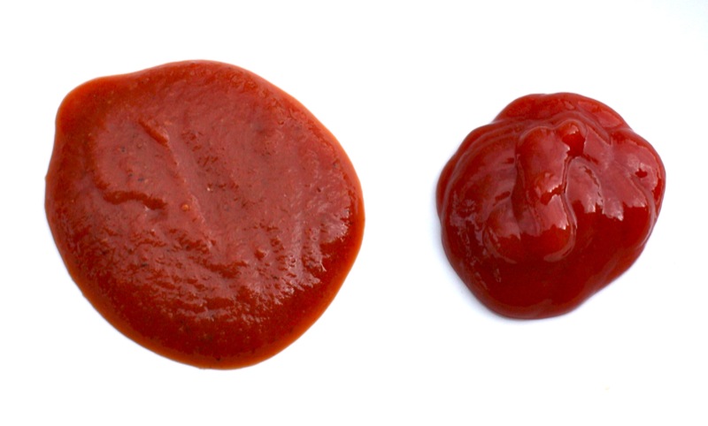 Yes, I did too have to compare “mine” with Heinz. Can you guess which is which? Oh, I know it is all too obvious, but really, I was not disappointed at all! I would have to add something unnecessary to get the gel consistency of the Heinz and definitely some colouring to get it that red. But, I was worried about the side by side taste test. Really. I had no idea what to expect. I loved what I had made, but how would it compare to the icon of all ketchup?