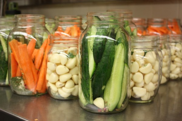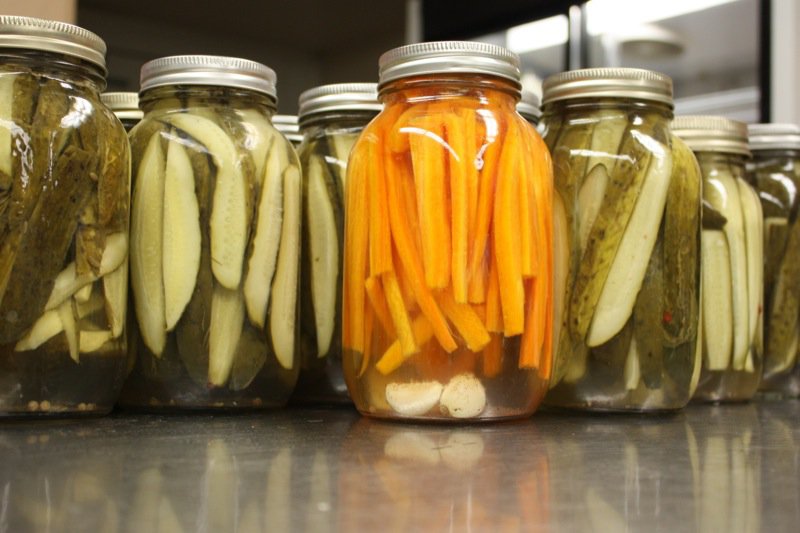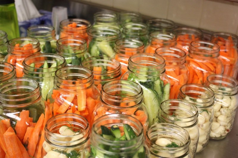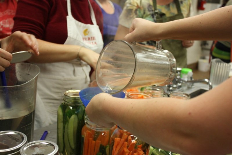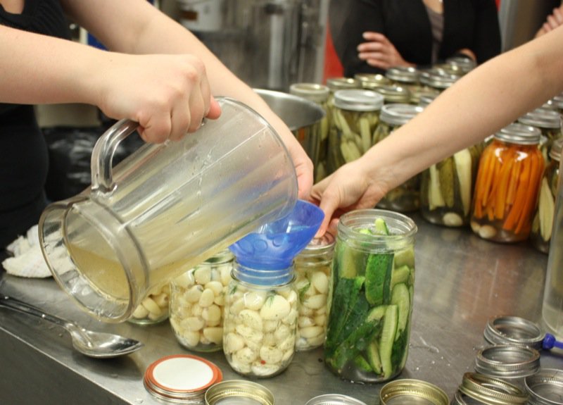 - Run a non-metallic utensil around the inside edge of the jar, allowing any trapped air to escape; add more brine if necessary