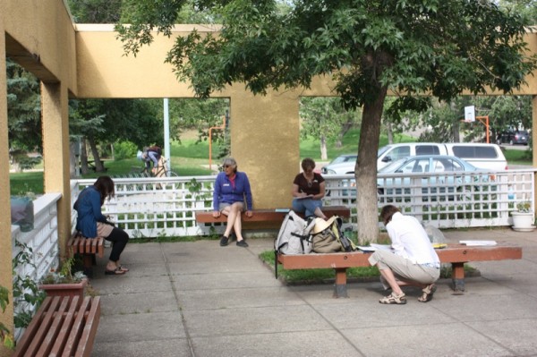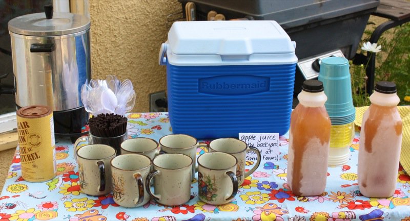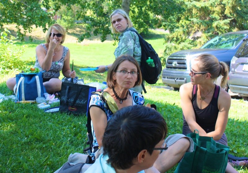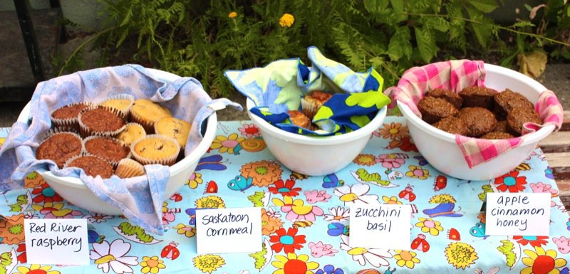 Don’t you just know it is going to be a great day when you arrive to a spread of wonderful homemade food – where ever you are? I do! Especially when I don’t expect it, and I definitely did not expect the loving touch that welcomed us this day from Patti Milligan of Lola Canola Honey! She was the co-leader to the Edible Garden Tours this year hosted by Claudie Bolli of Wild Green Garden Consulting. This is Claudia’s first year of taking it over from Ron Berezan, Edmonton’s own Urban Farmer, now living in British Columbia.