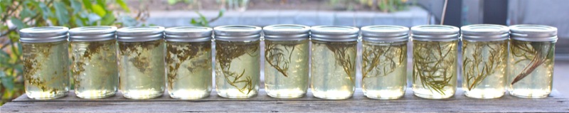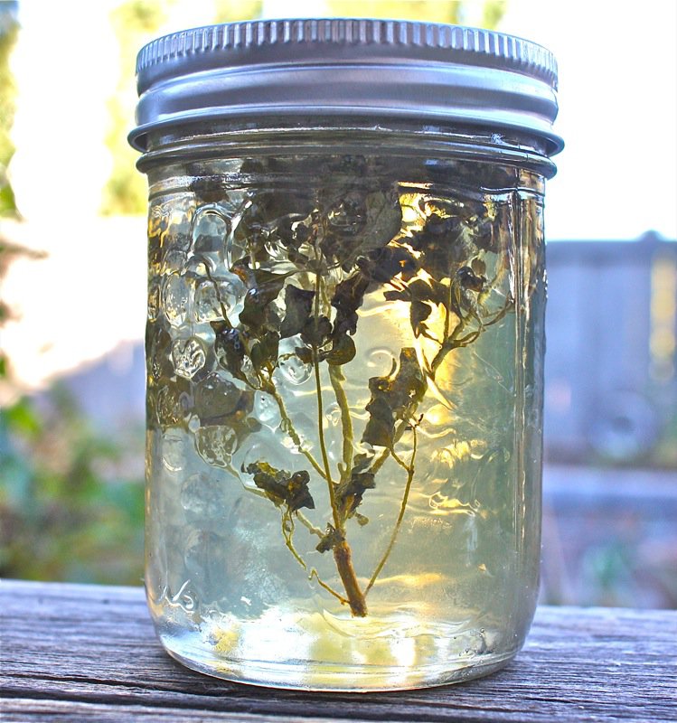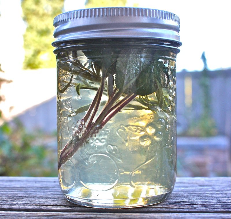 - fresh herbs packed into each jar (rosemary, thyme, sage)