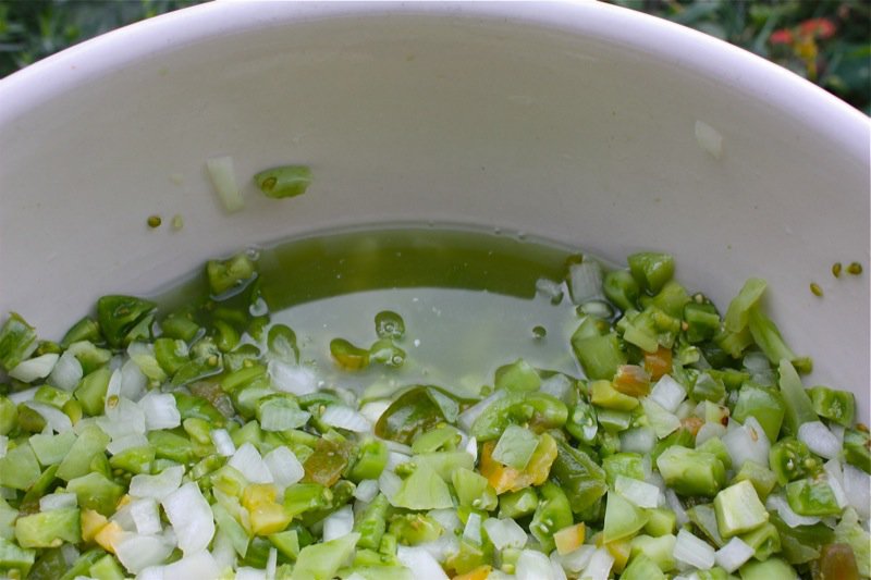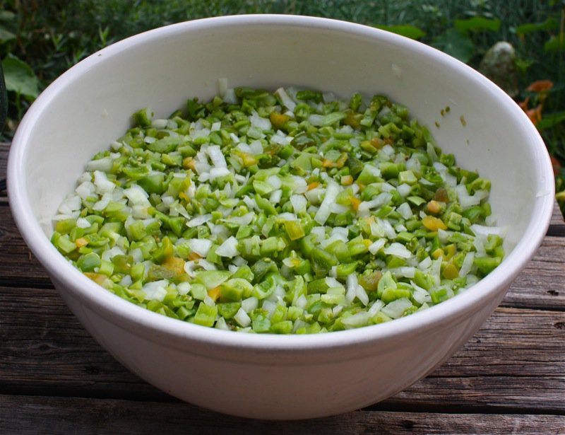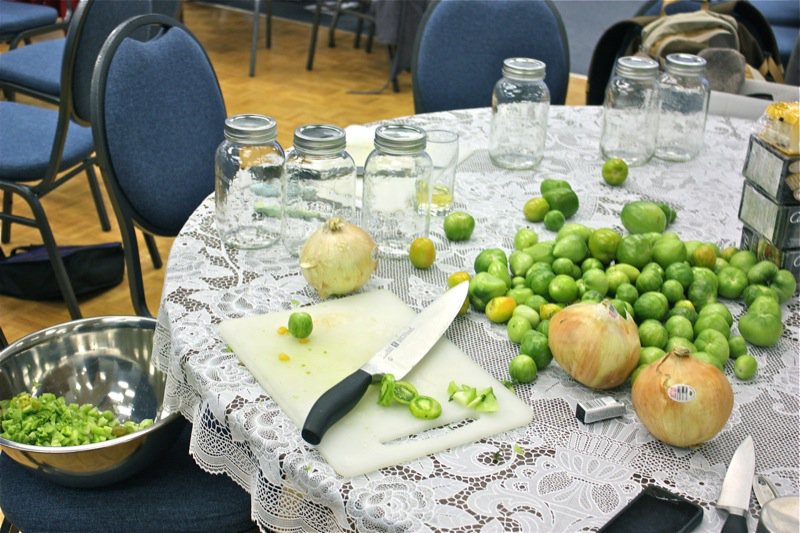 It all started when I took my green tomatoes to the canning bee to get some help dicing them. There were so many and I couldn’t possibly do them on my own! I knew I would get help and I did!