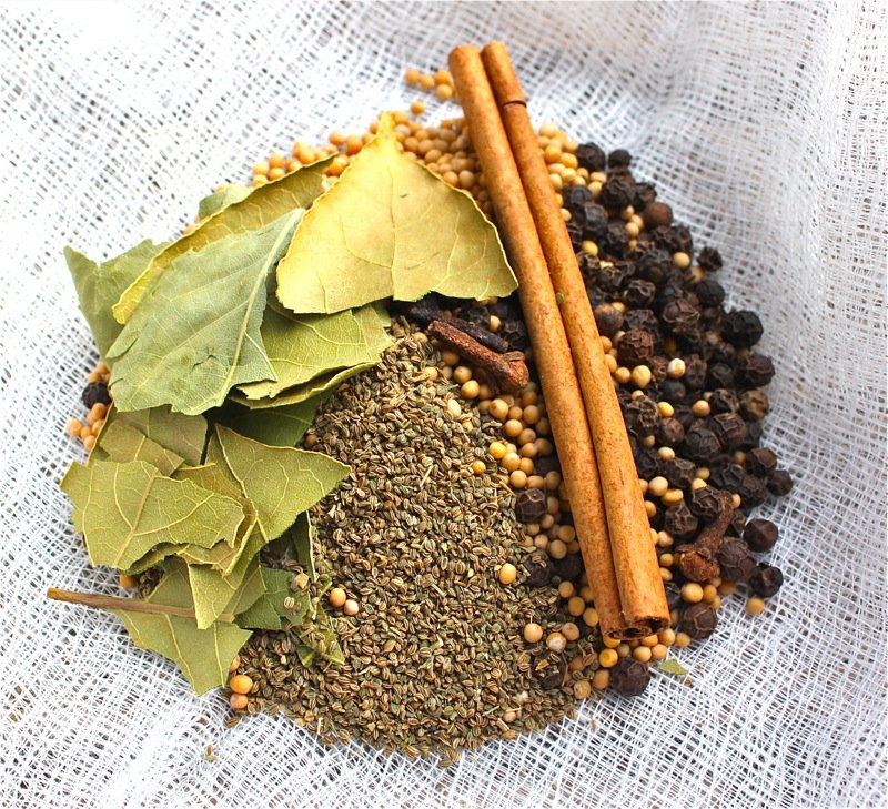 - ¼ cup pickling spices (in cheesecloth, recipe to follow)