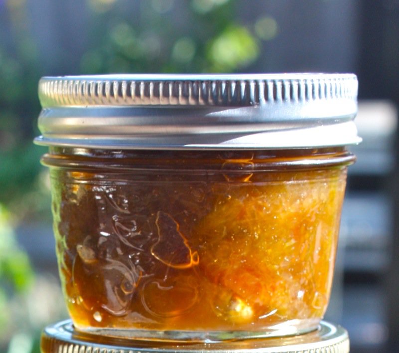 It was not a pretty sight, or I would have a pretty photo for you. The dish was full of liquid and the rhubarb were little floaty bits in the sweet liquid. I thought of throwing it out. I was shocked at how much liquid had come our of these sturdy sour stalks. Nah! Onto the stove top it went; the flame on high, and let’s see what I can boil this down to.