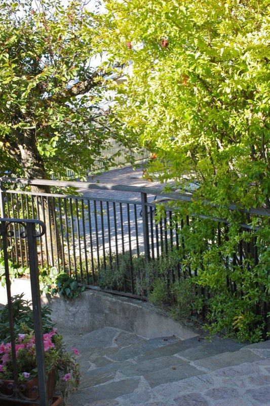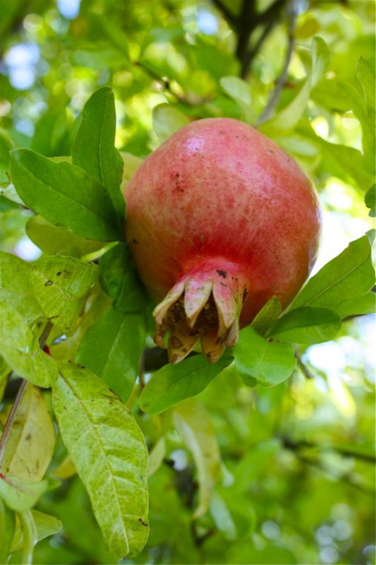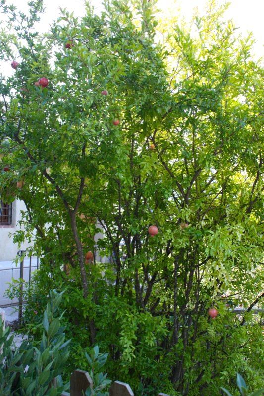 Pomegranate growing right on the upper terrace! I wriggled with delight seeing this and so wanted to pluck one from the tree and crack open the shell to reveal the shimmering ruby jeweled seeds inside, but I dare not ask. Just to see them growing flushed a flutter of tickle-flitters through me that coloured my cheeks as rosy as the pomegranates! We must make time to sit on this terrace and take in the view and this vegetation!
