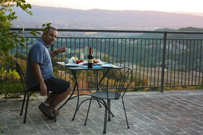 I had set out the food, Vanja brought the dishes, and we were ready to slow down and savour this evening at Agriturismo Alla Madonna del Piatto on the terrace perched atop a panoramic wonder.