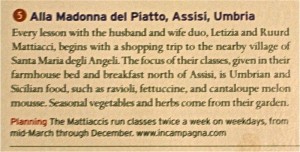 The cooking school evolved a year or two later through Letizia’s passion and talent for entertaining, food, and experience teaching her friends while abroad, and as their young daughter became a little more independent. How she goes about her classes is as unique as the warm experience in their home. Students participate in a learning and tasting of the regional food, and then in the preparation and sharing of a family meal. Letizia truly is “Our Lady of the Plate”, the literal translation of Alla Madonna del Piatto! (watch for my post of our class this week)