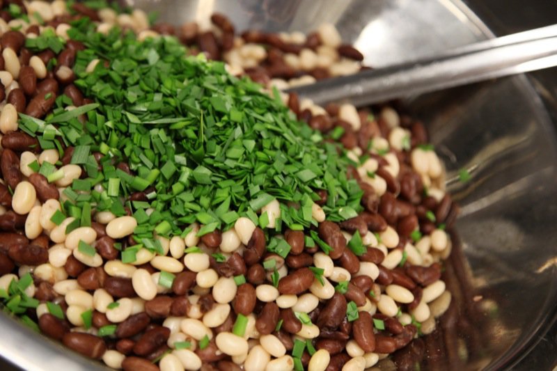 yeah, bean salad with great northerns, or with a mixture of great northern and light red kidney beans is a gift from God. Made with finely chopped onion, celery, carrot (and today red radish) there is little to improve on this with a dressing of mayo, maybe sour cream, sugar, vinegar, and mustard. Just like any salad or soup, put in what you have and taste it. Fuss with it and let it sit. Bean salad rules!