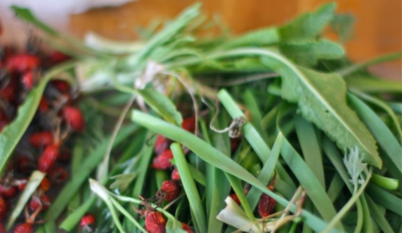 - 1/4 c wild onion, sliced (garlic chives, scallion, nodding onion)