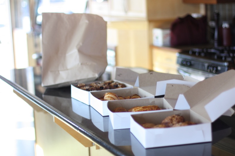 The last day of the Okanagan Food and Wine Writers Workshop 2012, Jennifer Cockrall-King had arranged a boathouse breakfast with Monika Walker from Okanagan Grocery’s fresh-out-of-the-oven’s hand crafted fare. While we all knew that the nondescript white boxes teetering in her arms were filled with our breakfast, the anticipation was ebbing on low. At least, for me. Things that come out of nondescript white boxes usually have a nondescript flavour profile.
