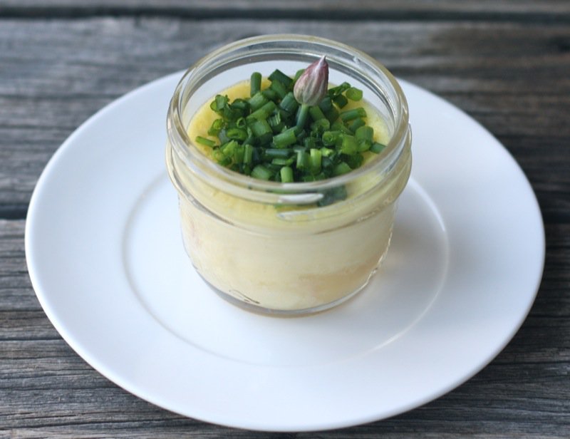 I did my research after cooking my prawns. Yes, I do know better! They were deadly delicious, but to maximize the experience of this wild and rare Pacific Ocean delicacy, I would suggest not using this recipe for your first tasting experience. It is a great recipe, though. Two minutes is the maximum time needed to cook these morsels of sweetness and sea for your first time, sauteed with butter. This dish was a very tasty complement to grass-fed tenderloin I served and the prawns were beautifully cooked. This savoury potted custard is a lovely starter for any meal and there is no end to what can be created from this concept. Grate some fresh horseradish into the cream for an added zip.