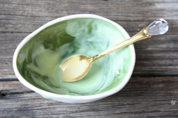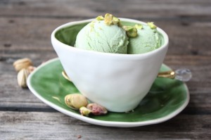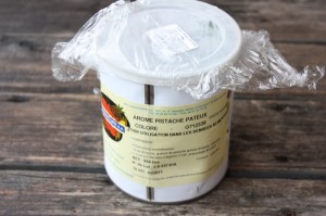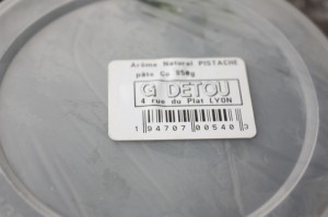 I make my own pistachio paste, as I actually happen to own a super powerful Indian blender. Here’s a quick link to it, so you can see how easy it is to make your own 🙂 Its a pain to scrape the skins off the nuts, but it does make the colour a vibrant green. http://www.thetiffinbox.ca/2010/09/pistachio-and-rosewater-gelato-ice.html