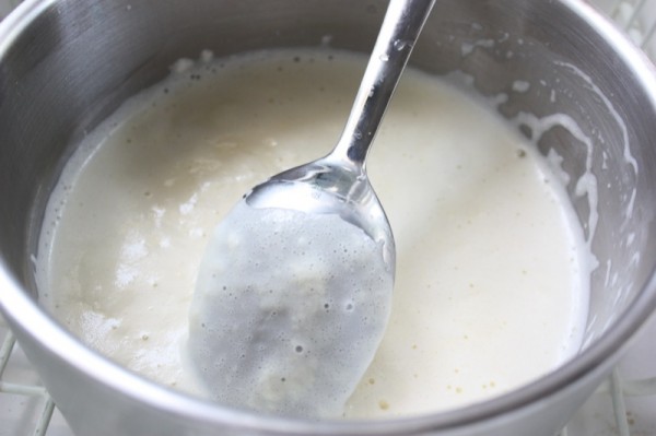 - Use a metal spoon, and continue to stir constantly; do not use a whisk as that will inhibit curd formation