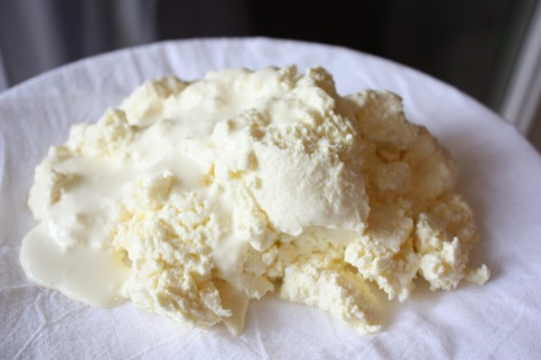 - Appearance: buttery colour while making it, but after setting overnight a rich cream colour with a looser curd (relatively speaking); soft cheese, but holds its shape