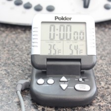 - Take out of the fridge and remove the lid; set the thermometer into the cream and wait for the cream to raise to 54°F