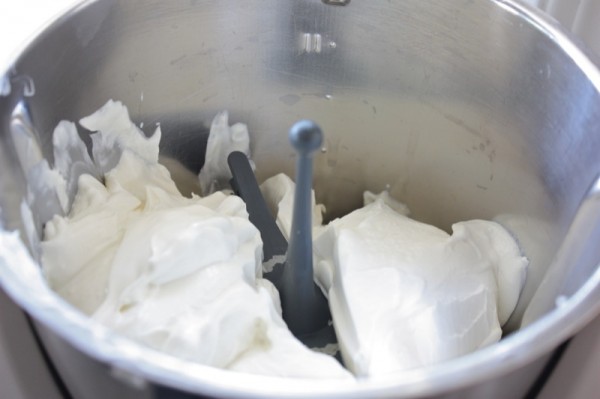 - Scoop the cream into the Thermomix bowl with the butterfly inserted into it; do not set time or temperature