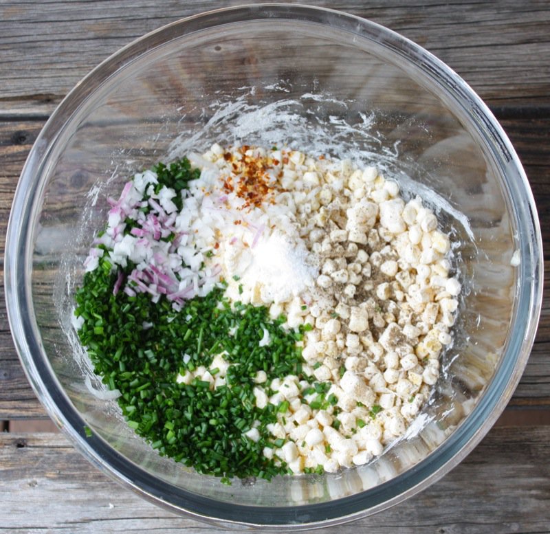 - 4 green onions minced (I used 1/3 cup chives and 2 tablespoons minced onion)