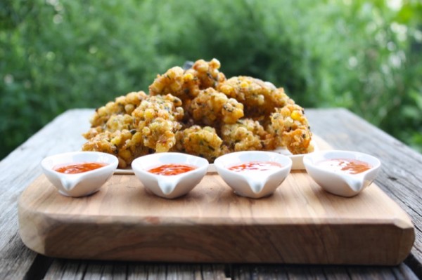 Corn Fritters? It is late August and I MAY be getting my act together. Not too sure yet. I need a little more evidence than just getting one post out on the required date. Rachael of pizzarossa was our August 2012 Daring Cook hostess and she challenged us to broaden our knowledge of cornmeal! Rachael provided us with some amazing recipes and encouraged us to hunt down other cornmeal recipes that we’d never tried before – opening our eyes to literally 100s of cuisines and 1000s of new-to-us recipes!