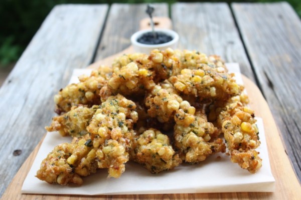 I know Vanja loves corn fritters: beer batter, lovely sweet corn, and deep-fried fatty crunch! Who wouldn’t? So that is what I made with my daughter, Ragan, who happened to be visiting at the same time as I realized I needed to make these and post them today. We had so much fun cooking and tasting in the kitchen together!