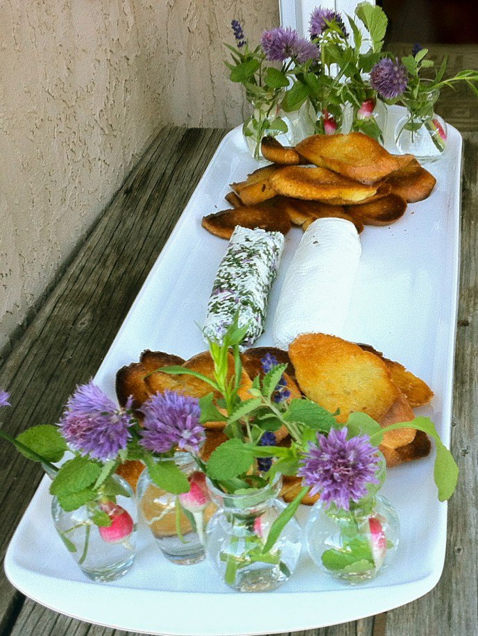 Did you already guess chèvre? It did seem like a logical next step. I hope each of you enjoys making this as much as the four of us did! I had so much fun with rolling the chèvre logs in herbs and serving the plain chèvre with miniature edible bouquets!