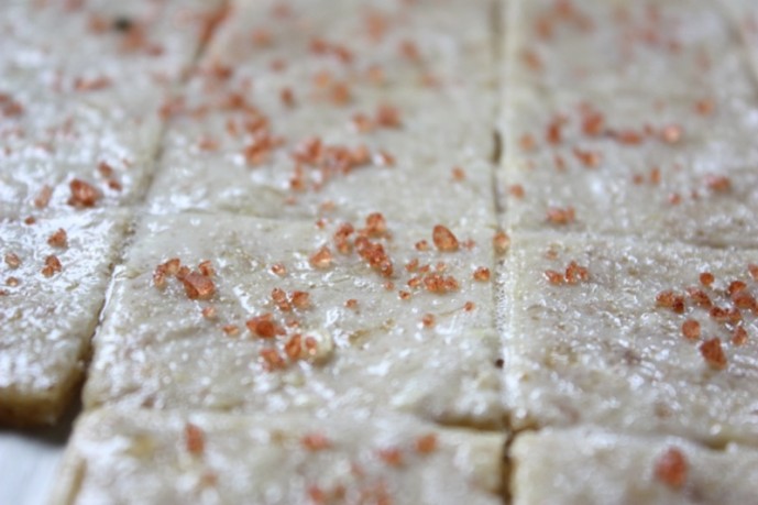 The addition of the crunchy hand-mined fleur de sel on the top elevates the taste over the top of any salted caramel ice cream bar! As well as the silken creamy texture, it held the freeze well. The addition of the salted caramel sauce was too decadent for words. No need for words when savoring this luxurious, velvet-sweet-salty-sumptuous reprieve amid a hot summer day. M-m-m-m-m…