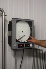 Whenever they make cheese, the machine is attached to a clock that has a paper dial on it where all of the data for that specific batch of cheese that day is recorded. There records must be available for visits from inspectors and whenever a cheese is made so if there is a problem or a great success, the record of exactly what was done, when and for how long is all on the paper.