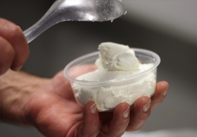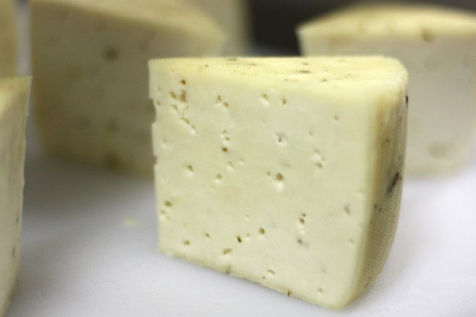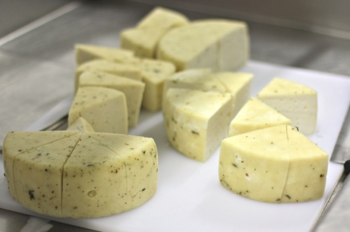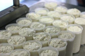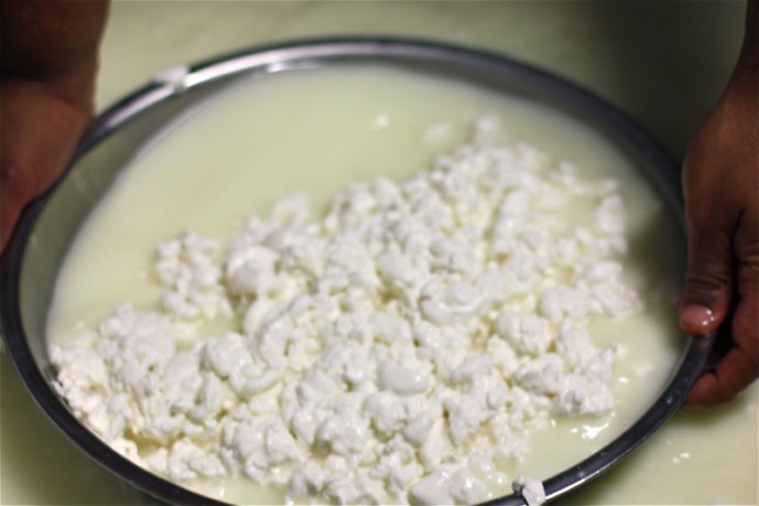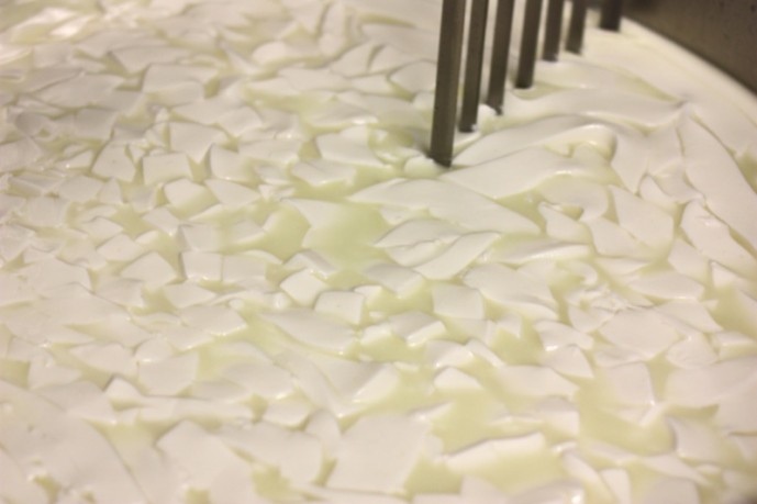 Smoky Valley Goat Cheese’s strength has always been its fresh and soft goat cheeses. No one anywhere in the area, or the province makes anything like they are making. Others do make hard cheeses, and fetas, but they have the corner on the Chèvre, St. Maure and Vallency recipes, as well as many others. The spectacular; second to none, Chèvre is what first introduced me to their cheeses. It is really lovely and the batch they had just and were showing us this day was the best ever. Just look at that luxurious curd!