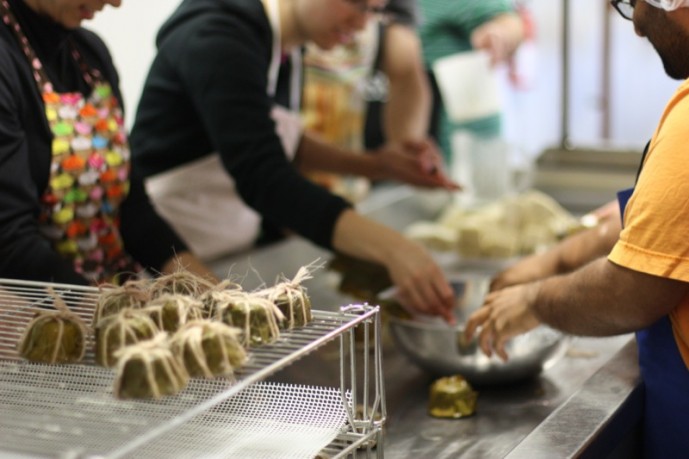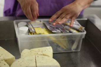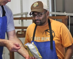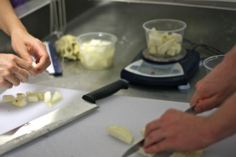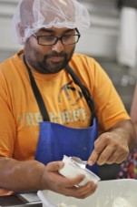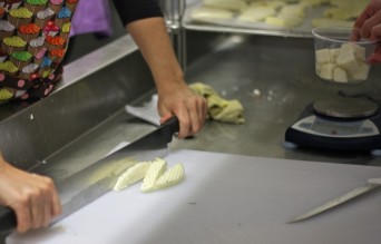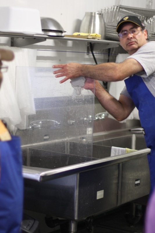 Very important to have everything spotless. Alex preps the room. Each of us put on our clean shoes, hairnets and aprons, then stood in line to wash our hands… many times through the day!