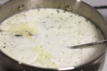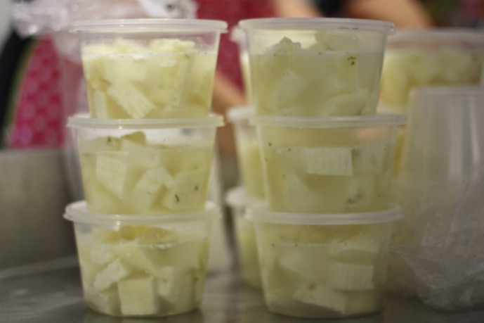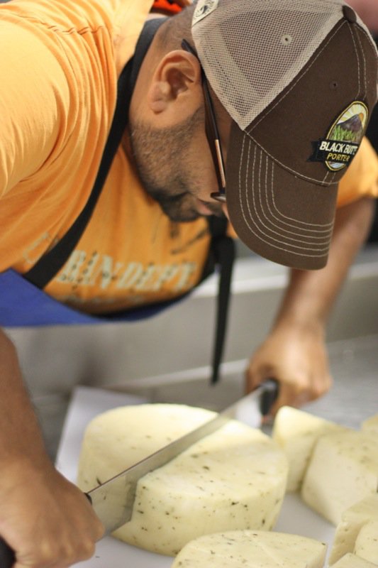 Lunch time! The feta would be ready to curd right after lunch. We had just finished the last pot of Halloumi and had yet to brine it for storage. Perfect timing.