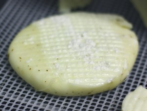 Instead of cutting the rounds in to squares, as Mary’s recipe suggests, we got busy cutting the cheese into manageable wedges and then heated them in the whey at 190°F until they rose to the top (about 30 minutes). At this point, they would be placed on a mat, and then turned after a few minutes.