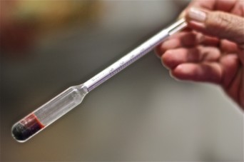 The cheese is ready to brine, and Leslie offered a little lesson on getting the brine to the proper density with her fancy dancy tool. I now need one of these, too! Any spares, Leslie?