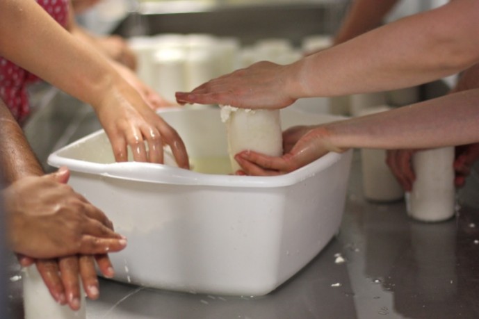 Many hands make for fast work… and fun work, too. It sure didn’t feel like work to any of us! The time was approaching for us to go home. We “forgot” to do the clean up which is all a part of a day of cheese making. That will be an important last step in the next cheese class, I am sure!