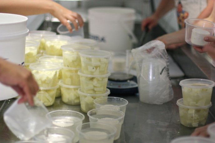 Leslie hadn’t used Mary’s recipe before, but felt that the feta we made with it on this day was the best batch she had ever had.