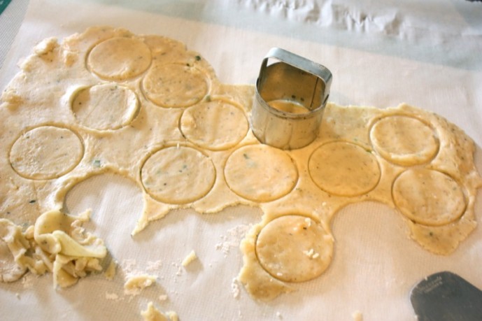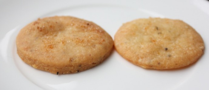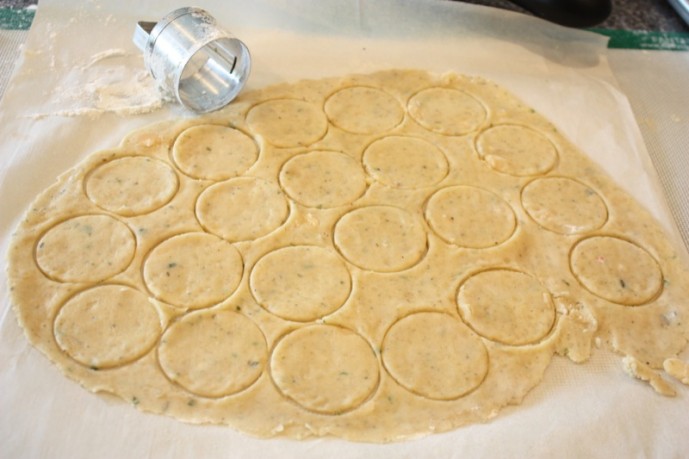 You can see the thicker roll, above, left. This is a recipe that works with a thin roll. The thicker roll is definitely for that elusive shortbread-like cheese cracker.