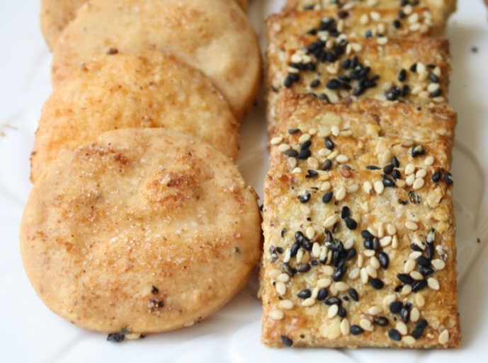 To say that I am all about “homemade” would be an understatement. So, when we were embarking upon Cheesepalooza August 1, having planning meetings and tastings, of course, I had to make crackers to go with the cheese. The fact that the Daring Bakers had announced crackers for the month of July was only a plus. Yet, life happened. The first crackers I made for the two-part challenge were the antithesis of these crackers. They are also delicious but are Healthy. They taste healthy and they are actually good for you. I cannot say the same about these. I can say these are much better for you than any delectable cheese cracker you would buy. They are addictive, yet not the shortbread cheese cracker recipe that I am working toward developing.