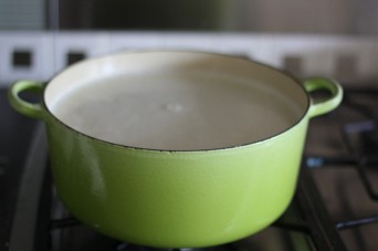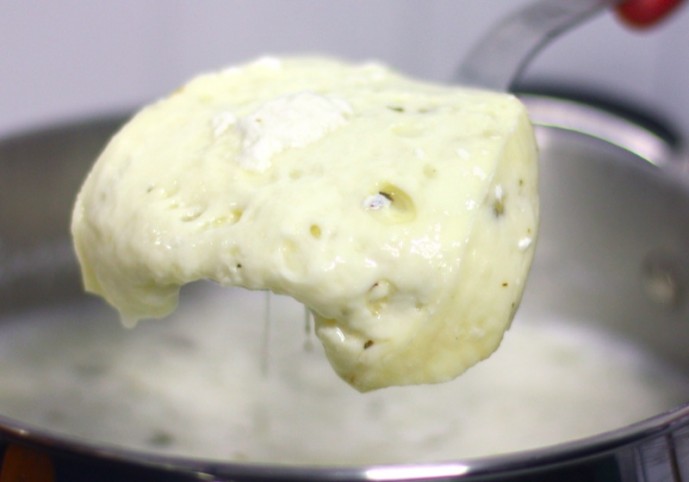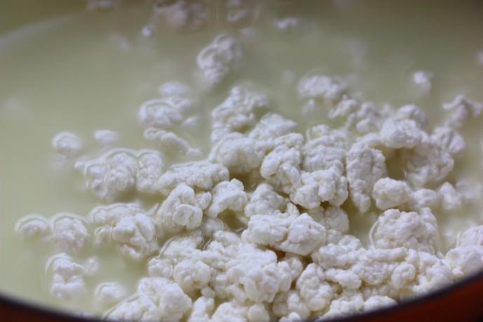 The hard part is the step just before the brining when the cheese needs to be “cooked” at 190°F in its brine for 30-35 minutes, or until it floats. This is my question: is this the step that determines the texture of the final product? Or, is it the “kneading” process when the whey is worked out of the curds while still in the whey bath?