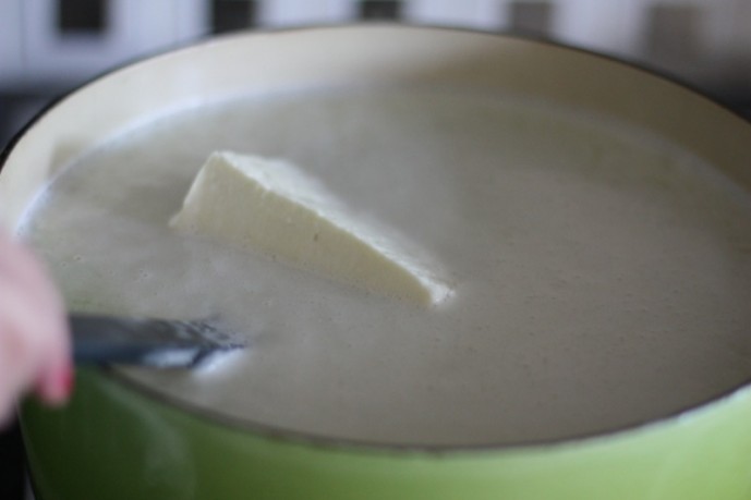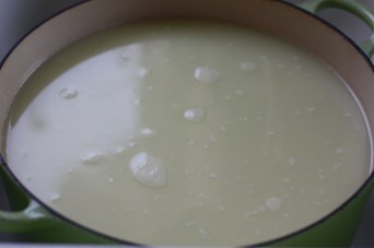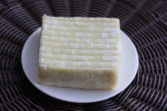 I was so proud of the cheese at this stage! It looked so professional! It was very rubbery at this point when I tasted it, thought the flavour was really a lovely blend of milky flavours. Mary says to save the cut off bits for a salad, but honestly – I wouldn’t put it in any salad, the texture was that off putting to me, so I cooked and brined the bits, too.