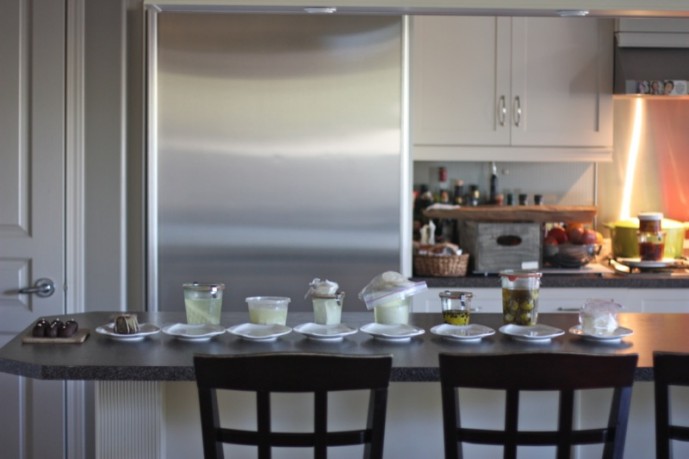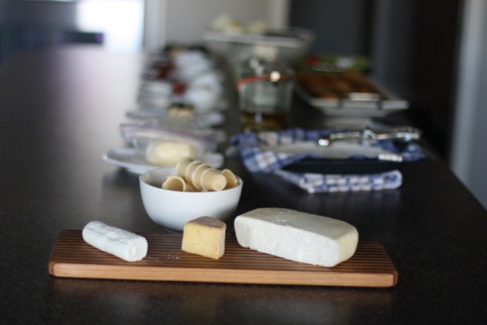 From left: Chèvre and Wild Flower Honey Truffles, Smoky Valley Banon, Valerie’s Halloumi, Smoky Valley Halloumi, Valerie’s Feta, Smoky Valley Feta, Cabècou, Yogurt Cheese Balls, Yogurt, Cultured Butter were my contributions for this tasting. I paired both Halloumi’s with my Preserved Oven Dried Tomatoes and the Fetas with fresh cherry tomatoes from my garden, as both were so salty.