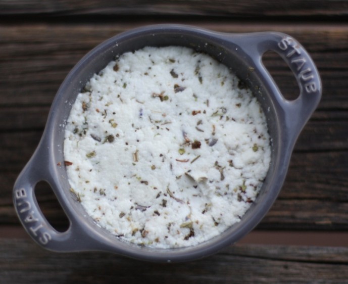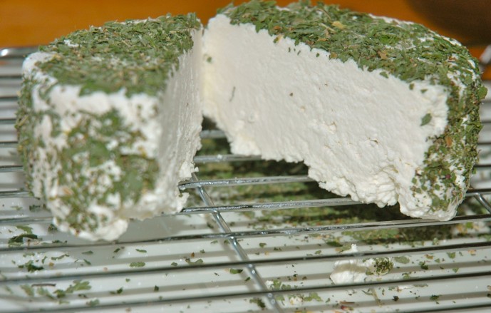 For those who may have had difficulty forming the chevre into a specific shape and having it keep that shape, I’d suggest draining the curds further until they are dry enough that they hold a shape.