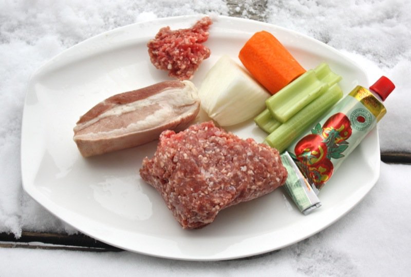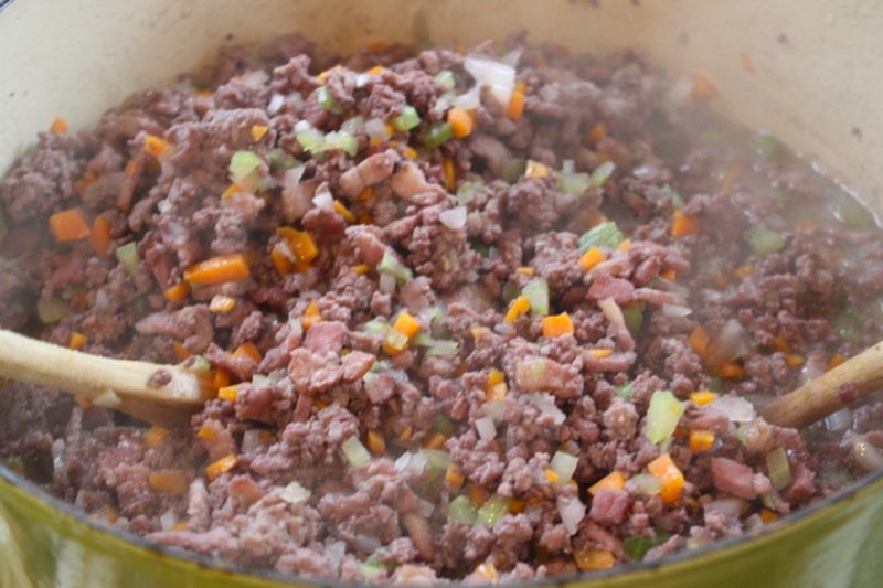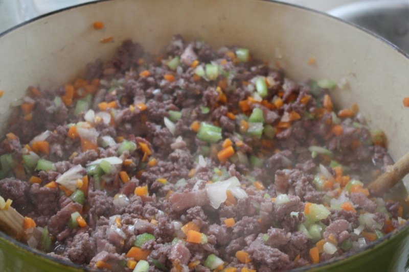 I will add, that I am not using any old beef, either. The Italians used tougher cuts for this recipe as they are the most flavourful; however, I am using the ground beef that I purchased with my half cow (Nouveau Beef) from Nature’s Green Acres. That is also where I got my pork belly from the half pig purchased there last fall. The point is, to make really good flavourful food, one needs to use really good flavourful ingredients. One thing that was exceptionally apparent in Italy, is that the people love their food. I don’t mean “the people love their food”, I mean, “the people really, really love their food.” I was told that, and exactly that, but so many Italians that I shall never forget it. Because of this, butchers are nearby, people go to them to get the meat ground from the cut they choose the morning they are making their meal. They have total control of their food. They know their farmers, their butchers, and their food, intimately. I thought I was particular about my food, but every person I met or watched throughout our travels was much more particular than I. The value of good, clean and fair quality food is an intrinsic part of the culture and made is very obvious to me that this was definitely the country that would adopt the Slow Food values, as they already live them and have for centuries.