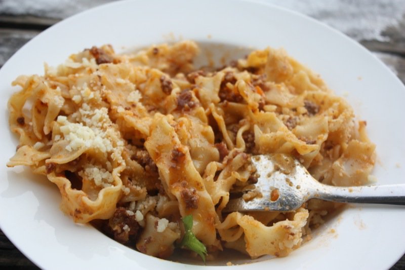 We made three kinds of hand rolled pastas and three different sauces. Each was unforgettable, but the one Vanja keeps asking me to make is the tradional Bolognese Sauce! which I have done a few times since my lesson! Now is the time to try to start the retelling of last year’s adventures and I will begin with this simple sauce with a depth of flavour unimaginable unless you taste it. That is what has made it a world famous recipe legend.