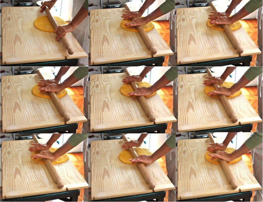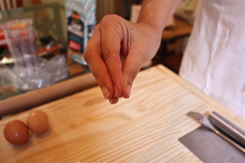 - Never touch the dough. No fingerprints allowed! (see last photo where Mirabel demonstrates how to NOT touch the pasta when turning the dough)