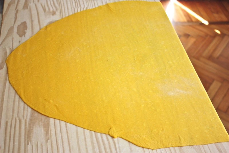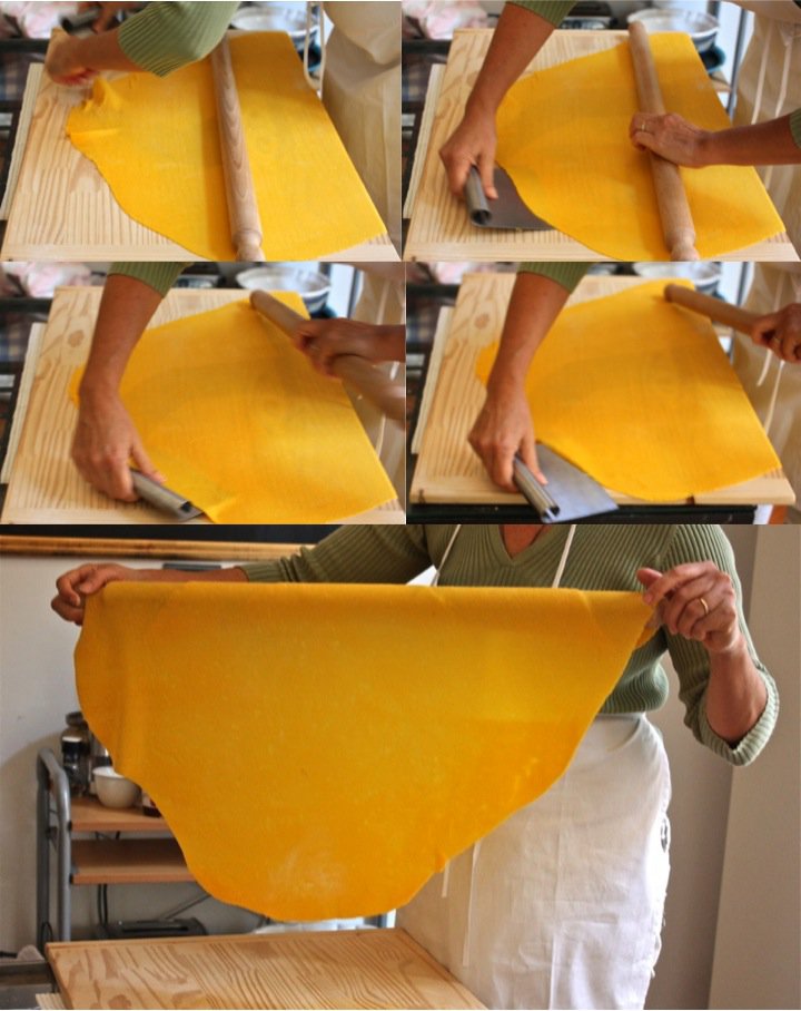- Depending upon the amount of pasta you are making, the sheet could be enormous by now, and difficult to work with, as mine was for four people. Work on each edge only once, if possible.