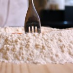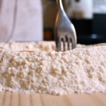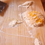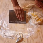 Do this until all of the flour is incorporated into the eggs. Have you noticed there isn’t any salt or any other ingredient? Only flour and eggs.