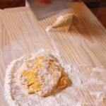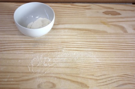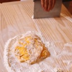 Use the spatula to release the dough from the board; it has a tendency to stick, and is very delicate at this point. Be gentle. Slowly, slowly: there is no rush.