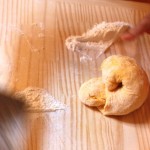 These techniques are her own, and personally, I find them brilliant! She carefully went over each one before actually demonstrating it on the dough. The thirty minutes were up just as she finished scraping the board to clean it of any dry bits. Consistently, dust with only a whisper of flour as needed before laying the dough on the surface after each ¼ turn.